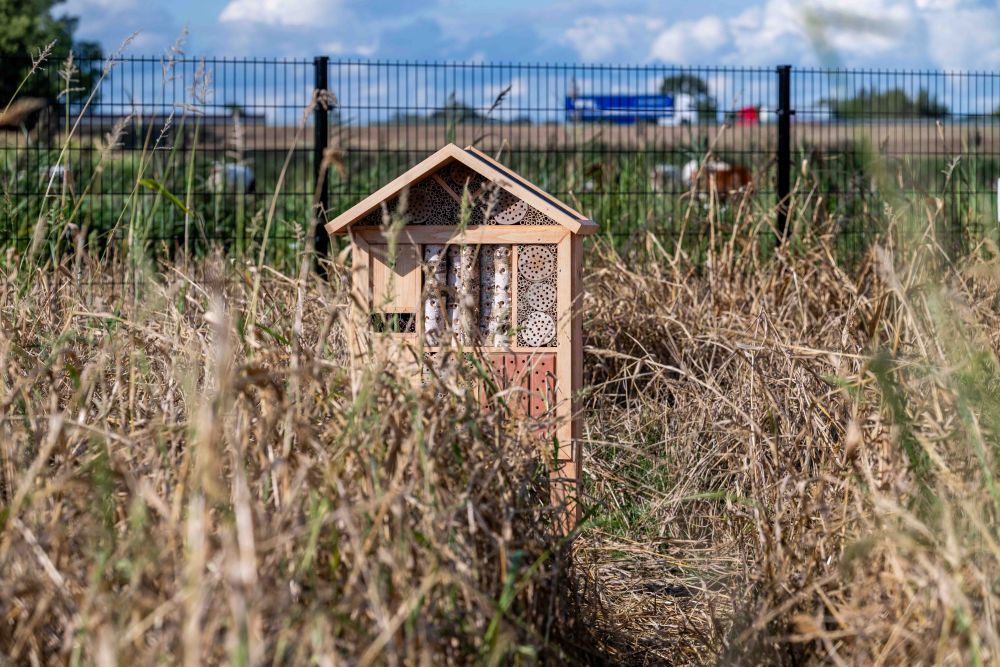 Ook plaatsen we insectenhotels, zodat bijen, vlinders en andere nuttige insecten een thuis vinden. Zo wordt een zonnepark niet alleen een plek voor energieopwekking, maar ook een leefgebied vol nieuw leven.