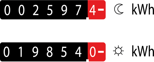 - Dubbele meter: meet je verbruik overdag en ‘s nachts apart (laagtarief en normaaltarief).