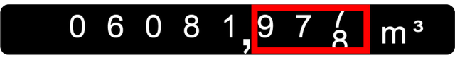 Bij het noteren van de meterstand is het belangrijk dat je alleen de cijfers noteert voor de komma. Soms is de komma niet zichtbaar, maar dan staan deze cijfers in een rood vak.