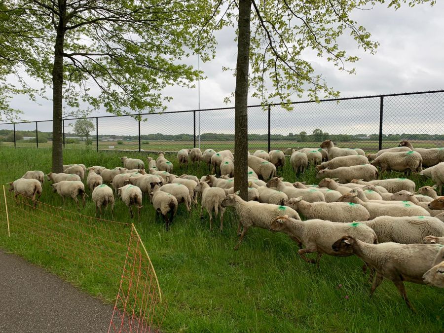 Natuurlijke begrazing door schapen bij Zonnepark A58